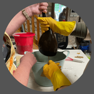 Het benodigde textiel, zoals linnen en bamboe, evenals beits en extra tannines, zijn verkrijgbaar in het atelier of kun je zelf van huis meenemen.