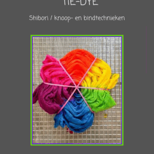 Stof knopen voor tie-dye, lekker schilderen met pigment, ijsverven waarbij de kleuren zich langzaam verspreiden, óf ecoprinten met bladeren en bloemen.
