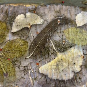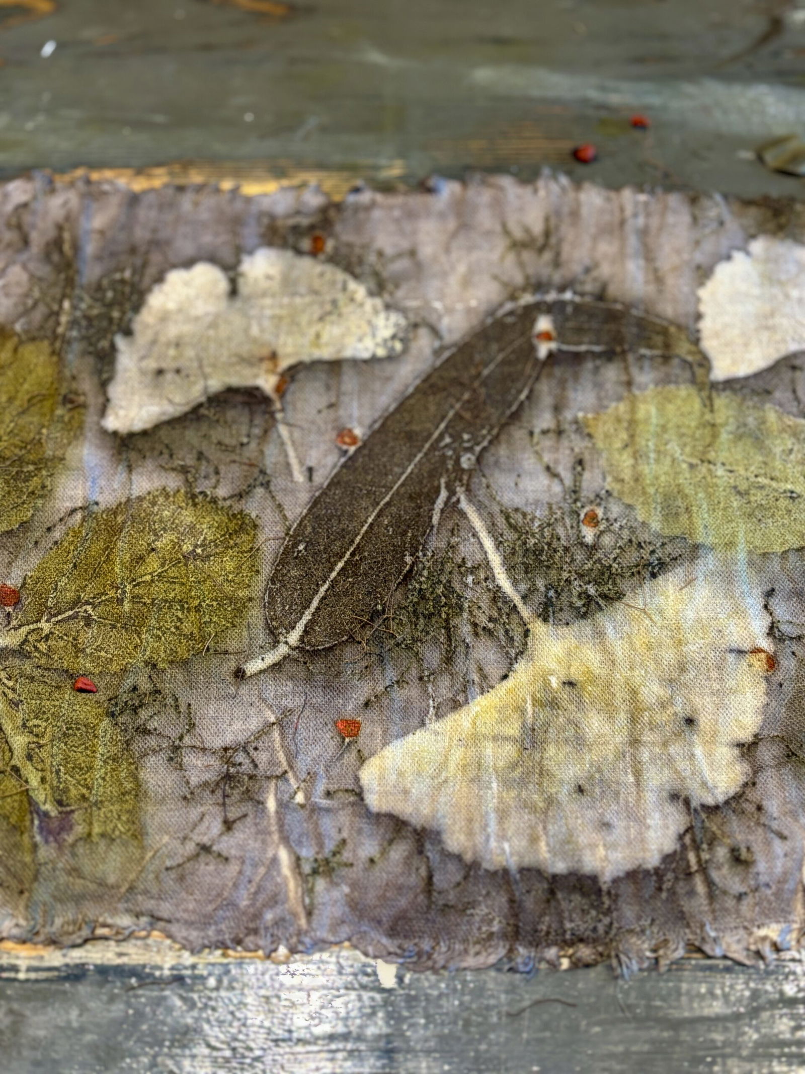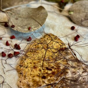 Tijdens het opbouwen van een ecoprint bundel strooi ik ze zachtjes over de bladeren. Niet te veel. Net genoeg.