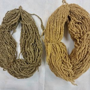 - Goudgeel tot oker: Met een langer verfbad en een hogere concentratie rabarberwortel verdiept het geel tot een rijkere, gouden of okerkleurige tint.