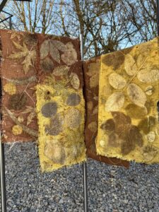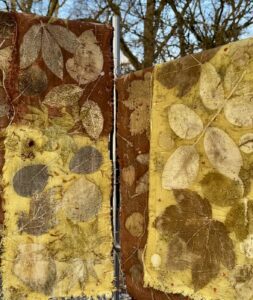 Op de foto zie je linnen met de achtergrondkleuren van Cutch- en Wouw extract